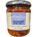 Sauce cuisinée (viande de canard, tomates, oignons, ail, graisse de canard, vin blanc, sel, paprika doux, cumin, origan, thym, piment, laurier, coriandres), haricots rouges.